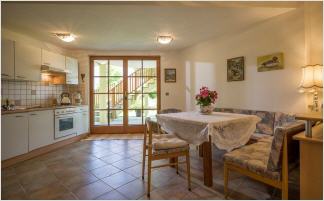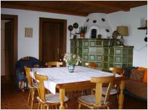 Ferienwohnung 120 m2; mit 3 DZ mit Dusche und WC, 1 EZ mit Waschgelegenheit Du/ WC seperat, Küche mit Micro-Welle, Spülmaschine, Waschmaschine, E-Herd, Kühlschrank mit Tiefkühlfach, WZ mit Kachelofen und TV, Terrasse mit Grill, Liegewiese, Schwimmbad beheizt.